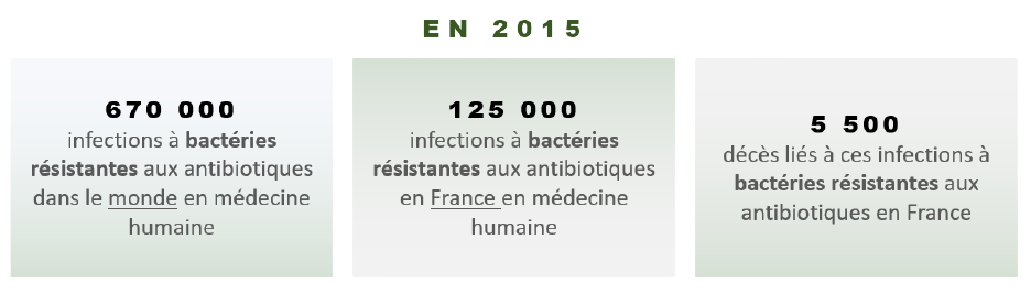 Les antibiotiques sont la catégorie de molécules la plus utilisée par les vétérinaires. C’est pourquoi la lutte contre l’antibiorésistance doit aussi être considérée comme globale dans le concept d’une santé unique « One Health ». Tout comme en santé humaine, les échecs thérapeutiques secondaires à des bactéries résistantes aux antibiotiques augmentent de façon considérable au cours des dernières décennies.